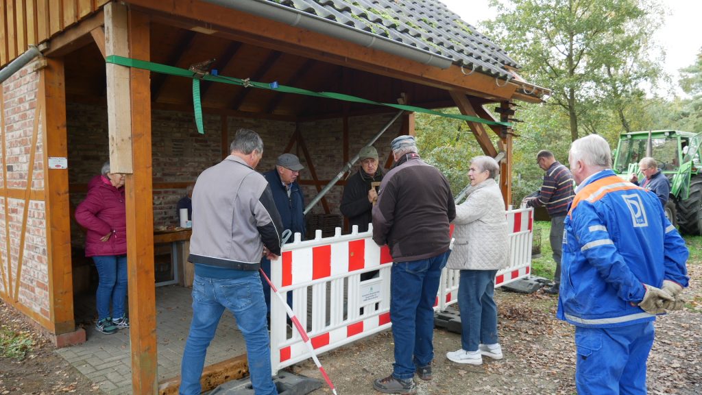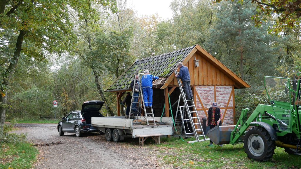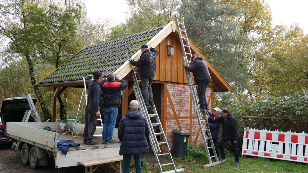 Doch anstatt aufzugeben, beschlossen die Heimatvereine, die Ärmel hochzukrempeln. Am 28. Oktober 2025 versammelte sich eine kleine, aber entschlossene Gruppe von Ehrenamtlichen der Beteiligten Vereine. Mit großem Elan und technischem Sachverstand machten sie sich an die umfangreichen Reparaturarbeiten. Bemerkenswert: Einige von ihnen waren bereits vor neun Jahren an der ursprünglichen Planung und Errichtung der Hütte beteiligt gewesen und brachten somit das perfekte Know-how mit.