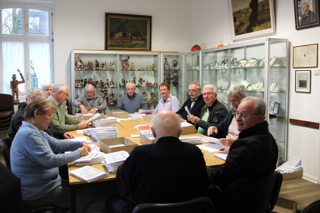 Am 23.02.2026 trafen sich Mitglieder des Heimatvereins im Heimathaus, um ca. 1300 Heimatblätter versandfertig zu machen. In den nächsten Tagen werden diese entweder per Post oder per Boten den einzelnen Mitgliedern zugestellt.Jedes Heft wurde mit dem Flyer und einem Adressaufkleber vervollständigt. Die Hefte für den postalischen Versand wurden einkuvertiert.