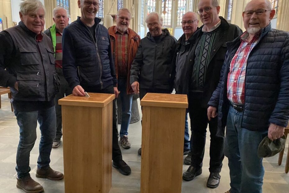 Altes Holz für neuen Opferstock Handwerker des Heimatvereins unterstützen die Kirche St. Nikomedes „Kann das… Opferstockübergabe in der Kirche St. Nikomedes